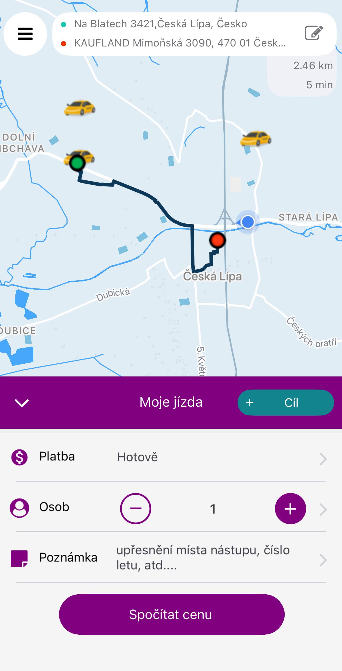 online možnost objednání vozidla taxi